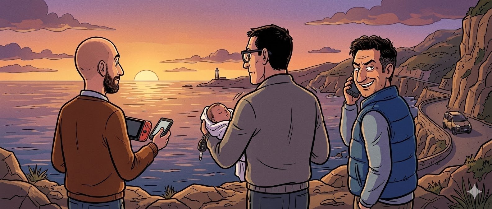 In mezzo c’è tutto il resto: la filosofia trasmessa a voce tra un vocale e l’altro, i Nintendo Switch comprati con gli assegni familiari, le suocere da fronteggiare con educazione e, se necessario, con una bestemmia controllata. C’è un pediatra che sentenzia vostra figlia è una Maserati, un Gesù Cristo che guida il pulmino scolastico e incarna il sogno di vita perfetta, un iPhone da milletrecento euro che si spacca cadendo da trenta centimetri. C’è la fibra che arriva a luglio come un miracolo e rende i porno finalmente fruibili in HD. E c’è Zelda, che vale nove e mezzo — mai dieci, perché dieci non si dà a nessuno.