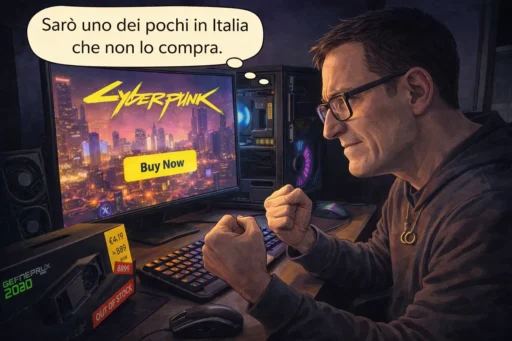 L’ultimo sabato del mese Alessandro assembla finalmente il PC nuovo: Ryzen 5600X, dissipatore a liquido Corsair monoventola, case Thermaltake verticale. Il processore a riposo sta a 34 gradi. La ventola si ferma da sola. Il silenzio è assordante. “Ha cambiato la vita,” sussurra, quasi commosso. Roberto, ascoltando il resoconto, sente risvegliarsi il sacro fuoco: “Mi sta venendo la botta da matto di farmi la stessa identica configurazione.” Ma poi, come sempre, ci ripensa. O forse no. “Può essere che sono talmente matto che stanotte ordino tutto. O domani mattina ti scrivo che non ho ordinato niente. Probabile che non ho ordinato niente.”
