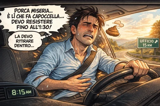 Il problema del mese, però, è il divano. Il divano di casa vecchia non entra dalla porta di casa nuova. Non c’è angolo di manovra, il corridoio è stretto, il cartongesso a destra blocca tutto. La soluzione più quotata: farlo entrare dal balcone con un paranco. Serve contattare uno di Fuscaldo che fa queste cose. Roberto accoglie l’ennesimo ostacolo con la rassegnazione di chi ha ormai sviluppato anticorpi contro le disgrazie domestiche.