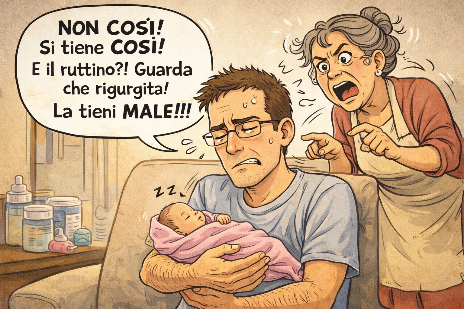 Ma il vero sfogo arriva sullo stress da papà: “Quest’ansia da prestazione è maturata tutta da mia suocera. Poi questo messaggio verrà cancellato perché se cade nelle mani di Luisa litighiamo. Mia suocera da questo punto di vista è bravissima, le voglio bene dell’anima, ma è veramente troppo invadente. Io non posso tenere in braccio mia figlia che ‘a tieni male, non si tiene così, vedi che piange, gli devi fare ruttino, vedi che è rigurgitata’. E sì, ci avrà ragione, ma per diamine, sono il papà, penso anche nei miei errori di avere il diritto. Piange? Pazienza. Piano piano più la tengo, più imparo a capire le sue esigenze. Anche Luisa è d’accordo, dice pure lei che la mamma ti porta fuori dalla grazia di Dio. Quando arrivo a casa vorrei avere il piacere di commettere anche i miei errori senza nessuno che corre dietro a dirmi ‘si fa così, non si fa così’.”